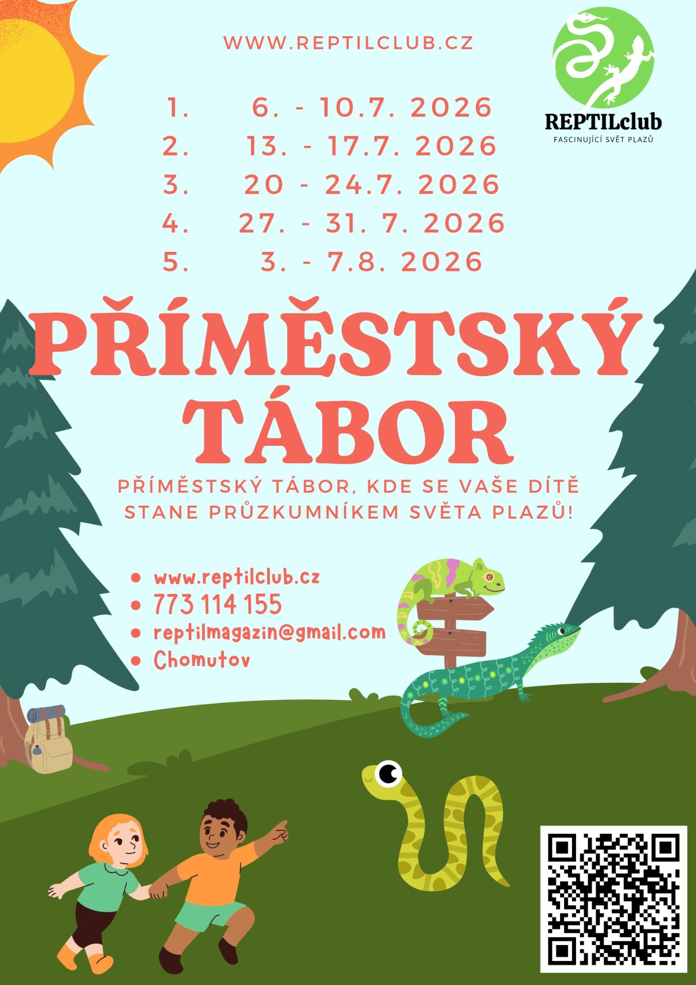 Chcete, aby vaše děti prožily nezapomenutelné letní prázdniny 2025 plné dobrodružství a poznání? Přihlaste je na příměstský tábor v REPTILclubu, kde se stanou průzkumníky fascinujícího světa plazů.