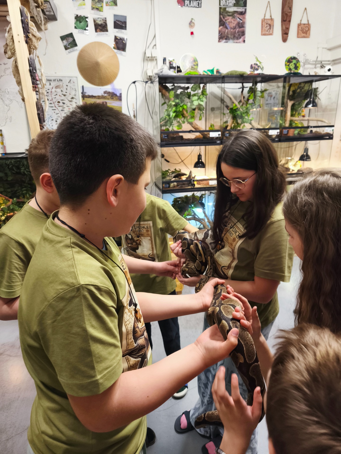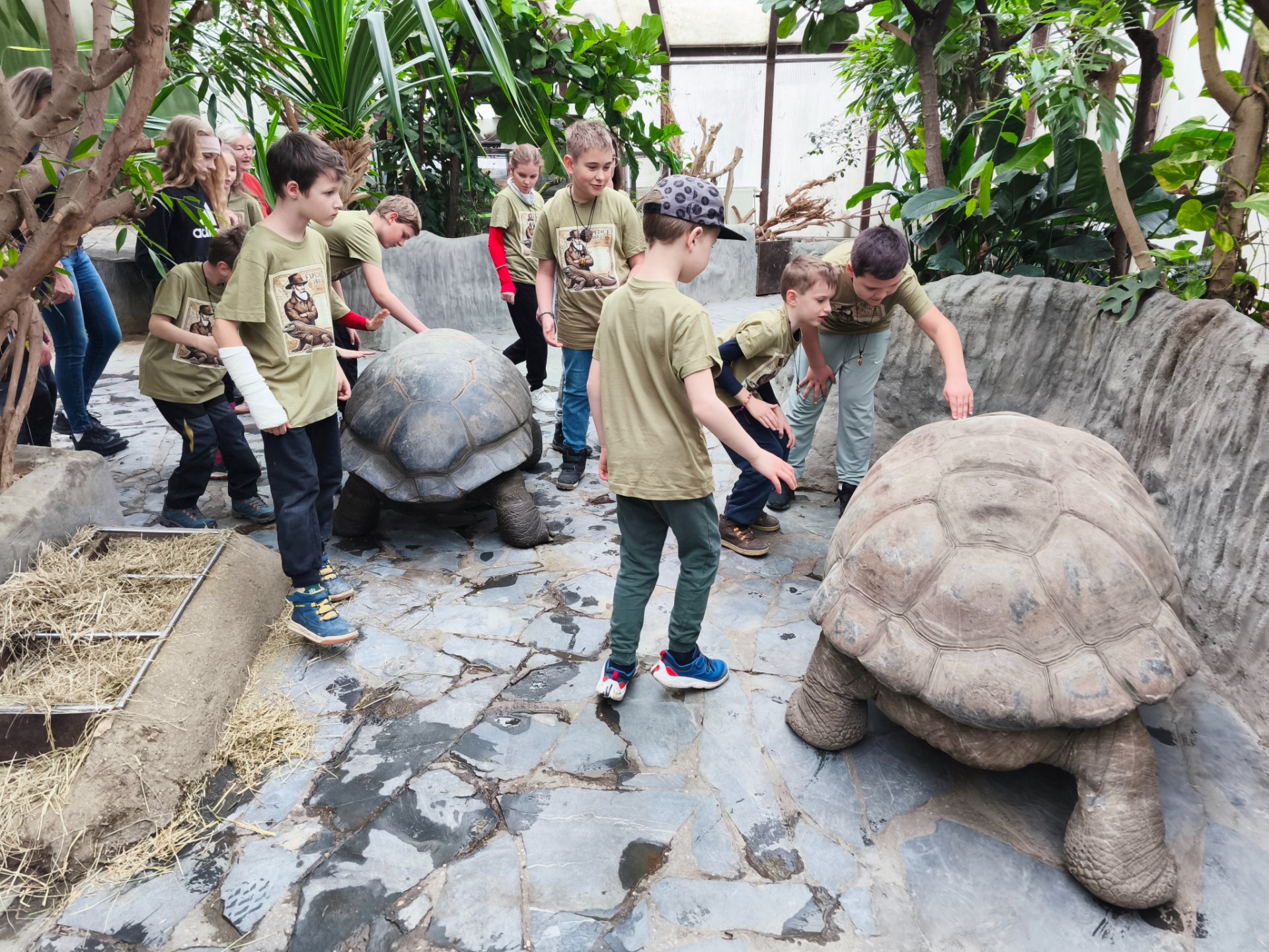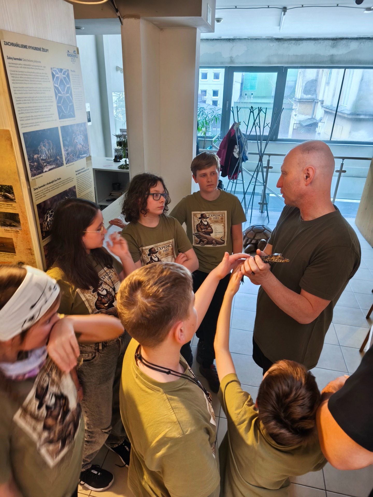 Druhý den jsme zavítali do Zoo Praha, kde nás čekalo nezapomenutelné setkání s obřími želvami a varany. Děti si mohly želvy nejen pohladit, ale i nakrmit — a mnohé z nich byly větší než samy děti. Poutavé povídání o těchto dávných tvorech otevřelo dveře do světa, který tu byl dávno před námi.