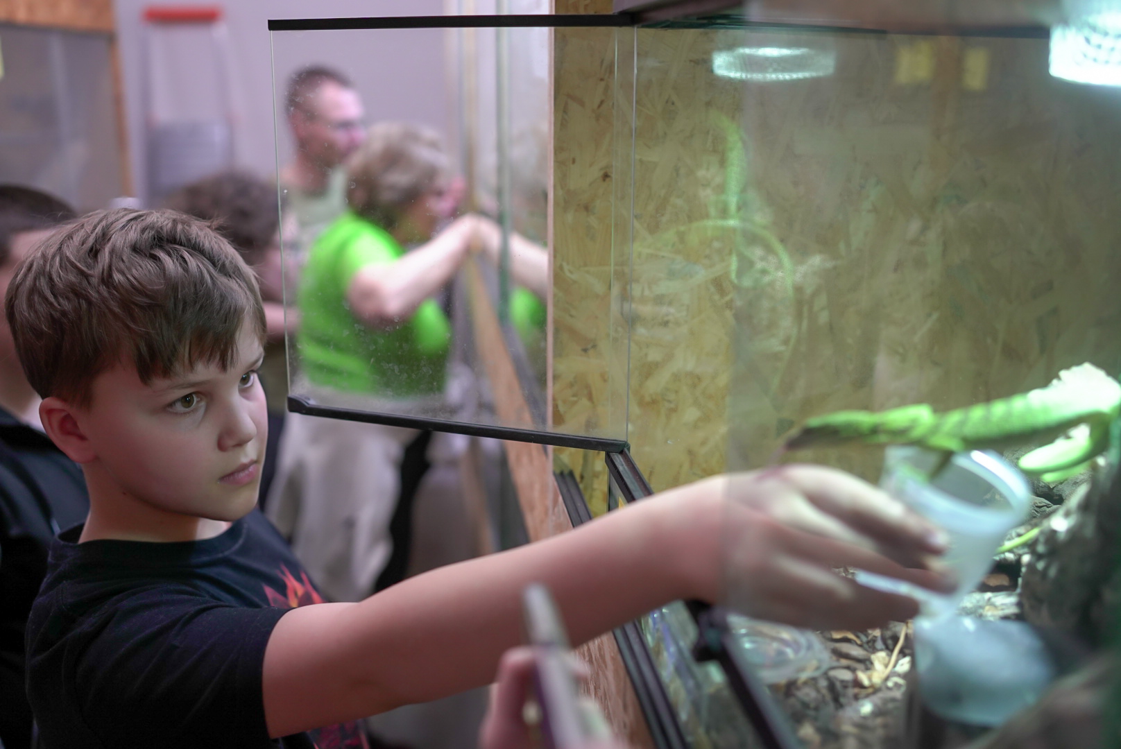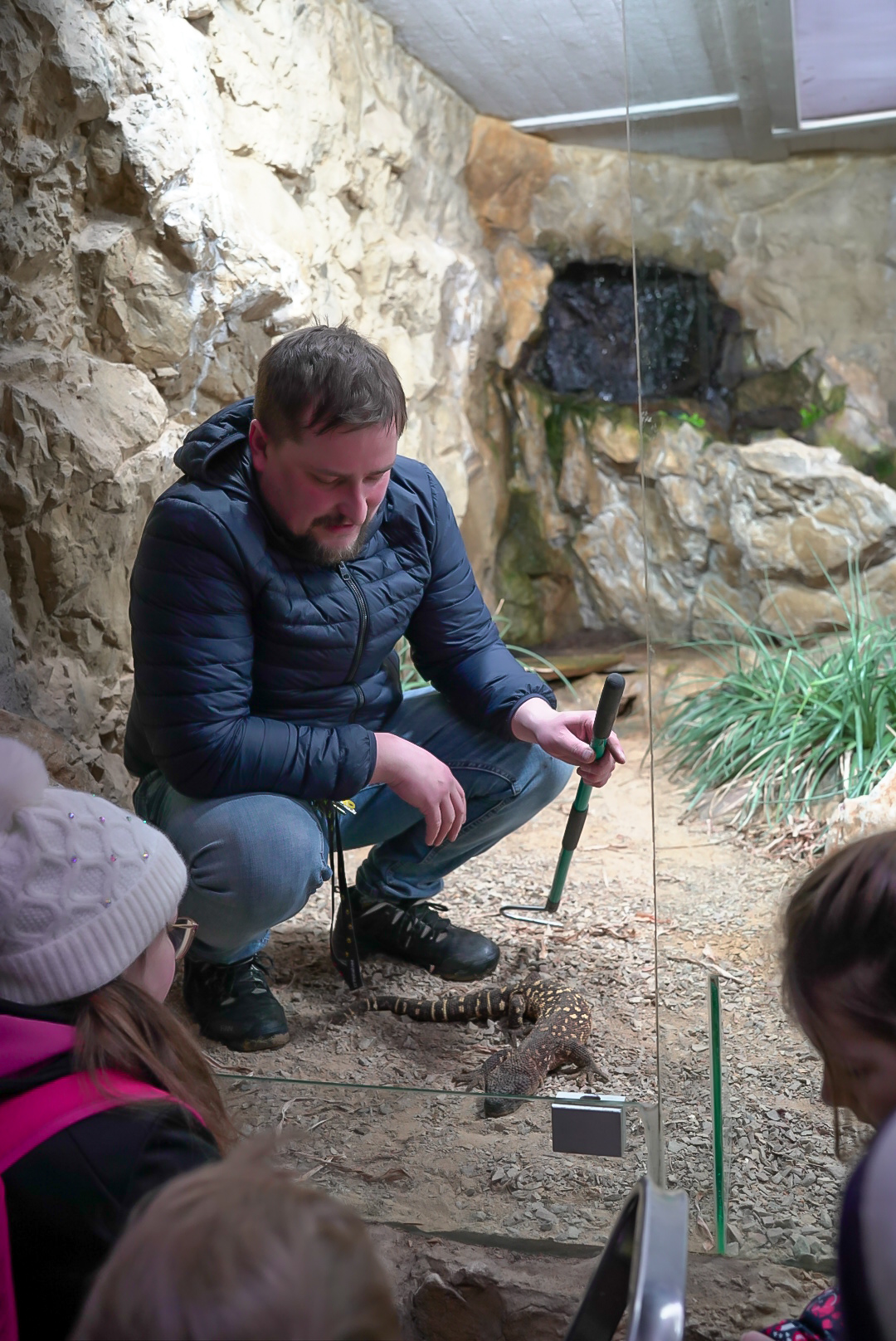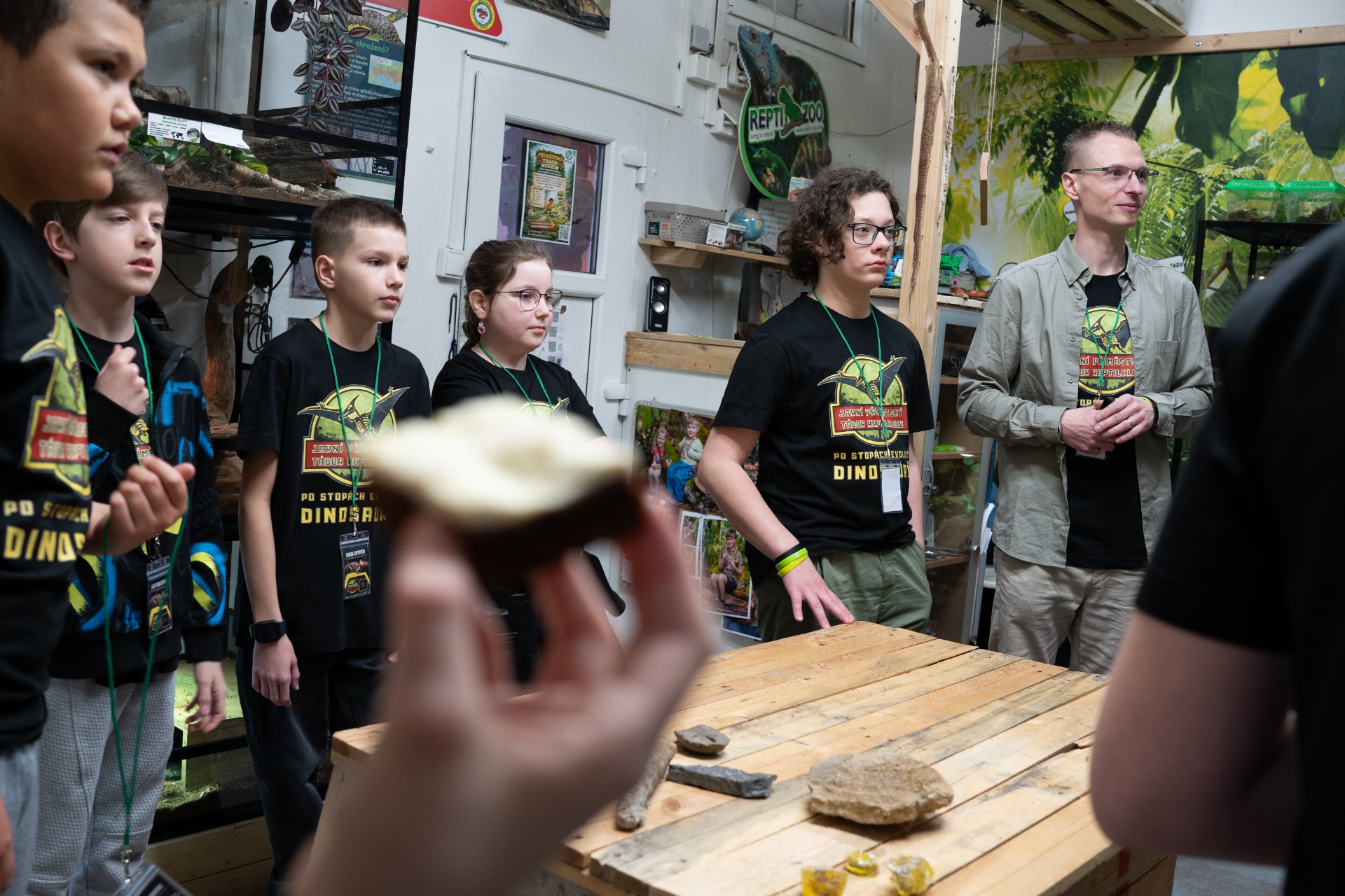 Evoluční linka pokračovala setkáním se současnými plazy. V soukromém chovu chovatelky Romany se děti dostaly k druhům, které běžně sotva spatříme v zoologických zahradách. Krmení varanů a vzácných varanovců bornejských patřilo k nejsilnějším zážitkům celého dne. Přímý kontakt, možnost pozorovat chování zvířat z bezprostřední blízkosti a dozvědět se detaily jejich chovu vytvořily zkušenost, kterou žádná učebnice nahradit nemůže.